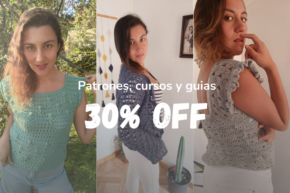 Todos los patrones, cursos y guías de crochet 30% de descuento.